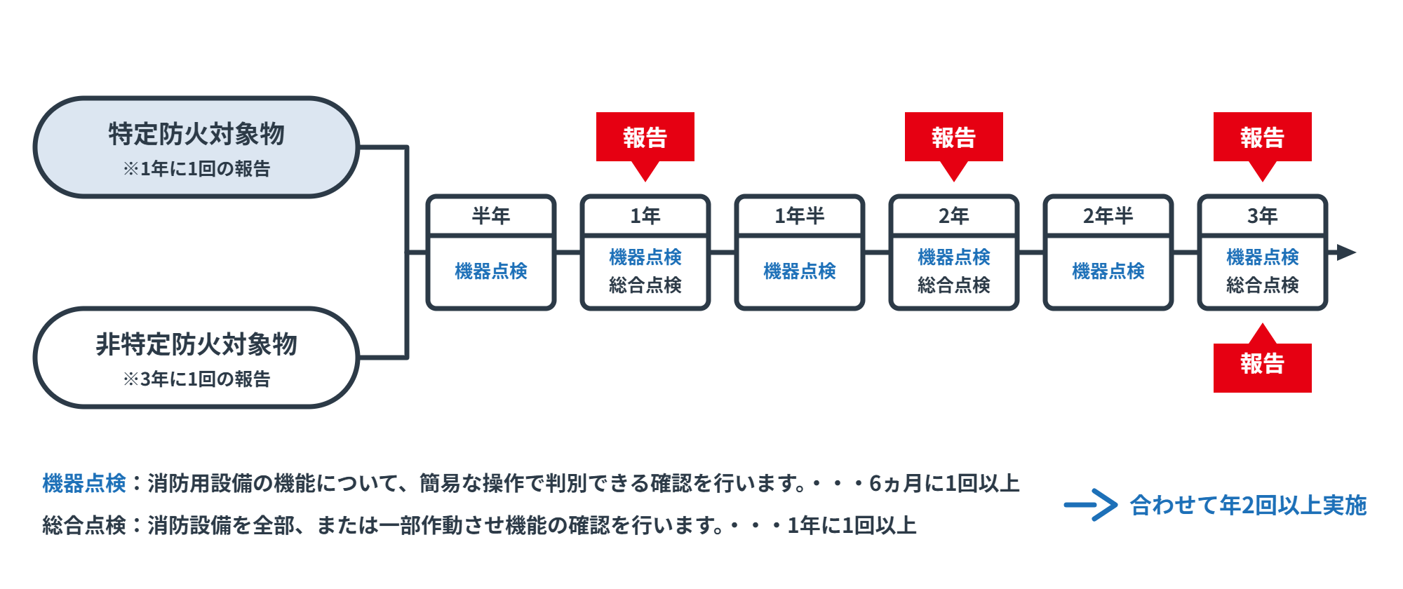 消防法に基づき定期的な点検の実施とその結果を消防機関へ報告することが義務付けられており、いろどり防災では有資格者が丁寧に点検し、建物の安全維持を支えます。